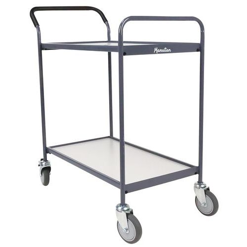 Wózek półkowy z uchwytem, do 200 kg, 2 półki o podwyższonych krawędziach - Manutan Expert