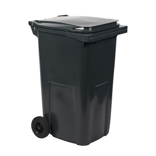 Plastikowy kosz na odpady segregowane, pojemność 240 l - Plastikowy kosz na odpady segregowane, zewnętrzny, pojemność 240 l, czarny/czarny