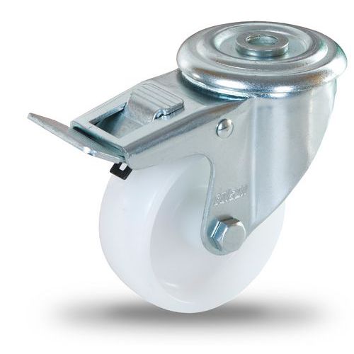 Kółka transportowe z polipropylenu z otworem centralnym, średnica 80–125 mm, skrętne, łożyska ślizgowe - Kółko transportowe z polipropylenu z otworem