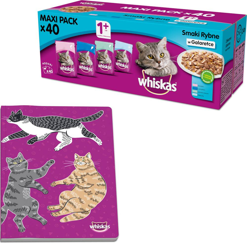 WHISKAS® Adult saszetka 40x100g Smaki Rybne i Tradycyjne + NOTES A5