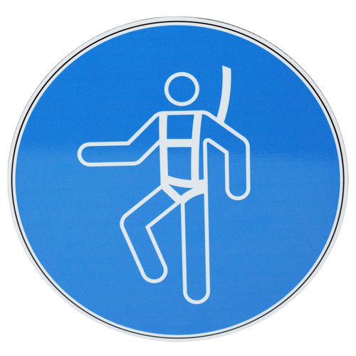 Znaki poleceń Manutan Expert - Używaj pasów bezpieczeństwa, aluminiowych - Znak komendy Manutan Expert - Stosuj uprząż asekuracyjną, aluminiową, 200 m