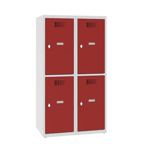 Niższe szafki szatniowe szkolne, 4 przedziały, 400 mm, zamek cylindryczny - Niższa szafka szatniowa szkolna, 4 przedziały, 400 mm, szara/czerwona, zam