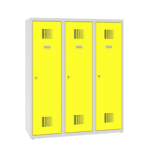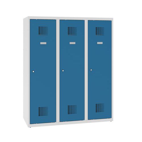 Niższe szafki szatniowe szkolne, 4 słupki, 300 mm, zamek cylindryczny ryglowany w trzech punktach - Niższa szafka szatniowa szkolna, 4 kolumny, 300 mm