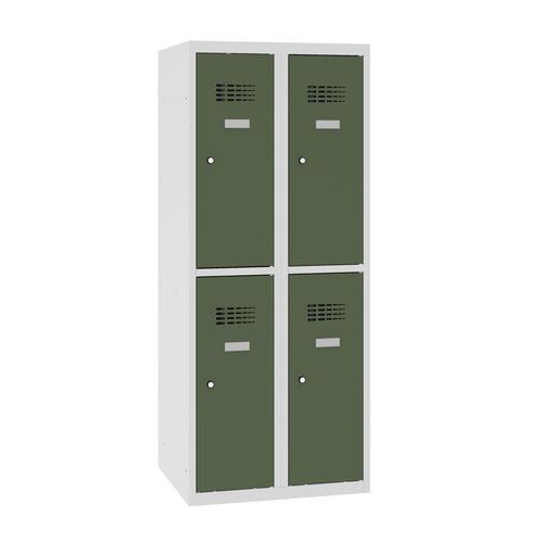 Niższe szafki szatniowe szkolne, 4 przedziały, 300 mm, zamek cylindryczny - Niższa szafka szatniowa szkolna, 4 przedziały, 300 mm, szara/zielona, zame