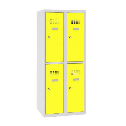 Niższe szafki szatniowe szkolne, 4 przedziały, 300 mm, zamek cylindryczny - Niższa szafka szatniowa szkolna, 4 przedziały, 300 mm, szara/żółta, zamek