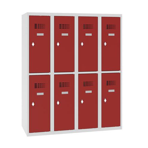 Szafki szkolne obniżone, 8 przegródek, 300 mm, zamek obrotowy - Szafka szkolna niska, 8 przegródek, 300 mm, szaro-czerwona, zamek obrotowy