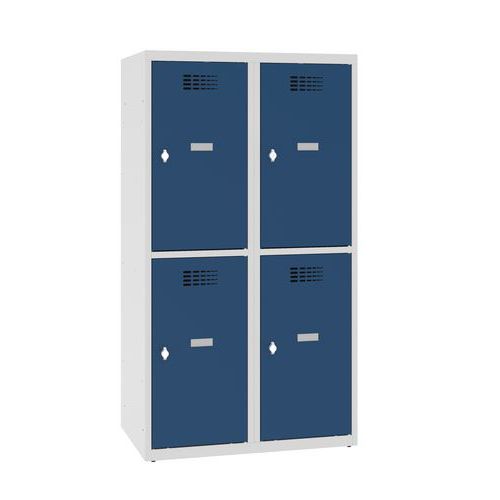 Niższe szafki szatniowe szkolne, 4 słupki, 300 mm, zamek cylindryczny ryglowany w trzech punktach - Niższa szafka szatniowa szkolna, 4 kolumny, 300 mm