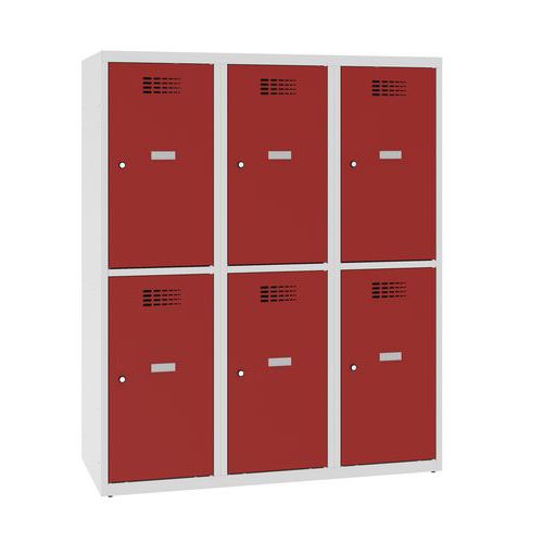 Niższe szafki szatniowe szkolne, 6 przedziałów, 400 mm, zamek cylindryczny - Niższa szafka szatniowa szkolna, 6 przedziałów, 400 mm, szara/czerwona, z