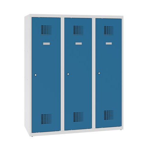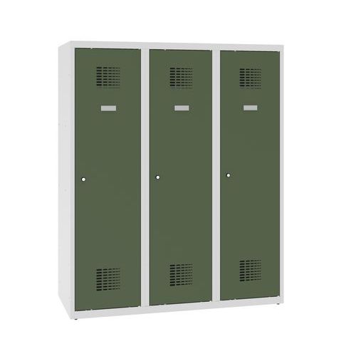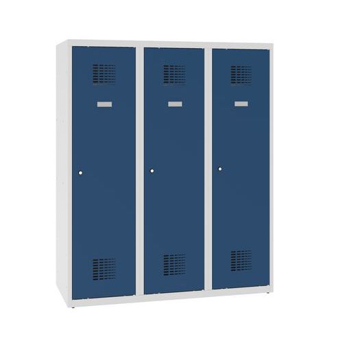 Niższe szafki szatniowe szkolne, 3 słupki, 300 mm, zamek cylindryczny ryglowany w trzech punktach - Niższa szafka szatniowa szkolna, 3 kolumny, 300 mm
