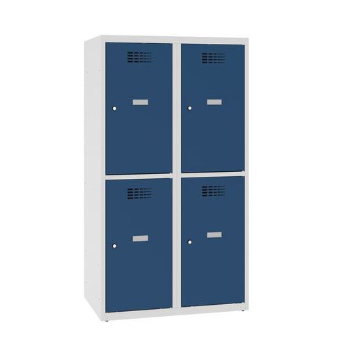 Niższe szafki szatniowe szkolne, 4 przedziały, 400 mm, zamek cylindryczny - Niższa szafka szatniowa szkolna, 4 przedziały, 400 mm, szara/ciemnoniebie