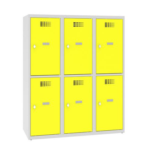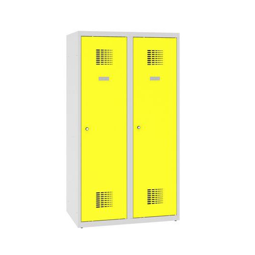 Niższe szafki szatniowe szkolne, 2 słupki, 400 mm, zamek cylindryczny - Szafka szkolna obniżona, 2 kolumny, 400 mm, szaro-żółta, zamek cylindryczny