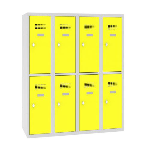 Szafki szkolne obniżone, 8 przegródek, 300 mm, zamek obrotowy - Szafka szkolna niska, 8 przegródek, 300 mm, szaro-żółta, zamek obrotowy