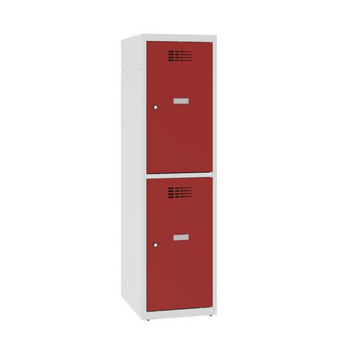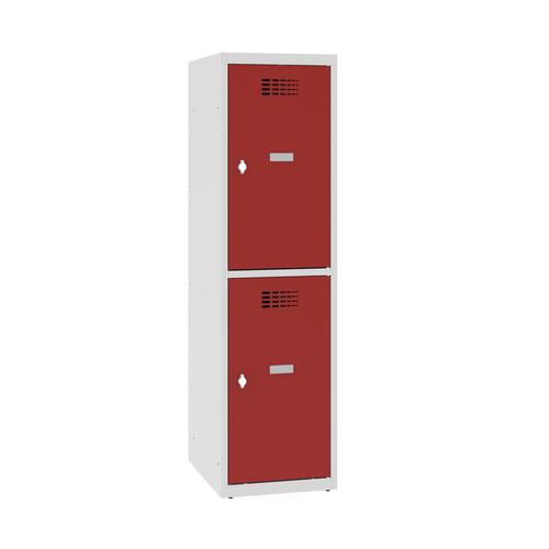 Niższe szafki szatniowe szkolne, 2 przedziały, 300 mm, zamek cylindryczny - Szafka szkolna niska, 2 przegrody, 300 mm, szaro-czerwona, zamek cylindryc
