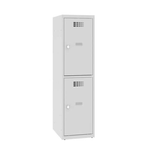 Niższe szafki szatniowe szkolne, 2 przedziały, 300 mm, zamek cylindryczny - Szafka szkolna niska, 2 przegrody, 300 mm, szaro-szary, zamek cylindryczny