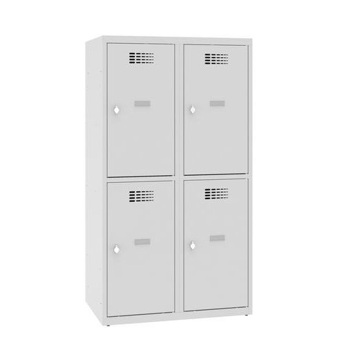 Niższe szafki szatniowe szkolne, 4 przedziały, 400 mm, zamek obrotowy - Niższa szafka szatniowa szkolna, 4 przedziały, 400 mm, szara/szara, zamek obro