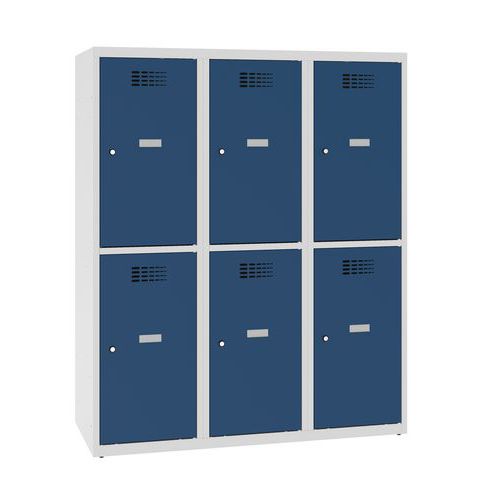 Niższe szafki szatniowe szkolne, 6 przedziałów, 400 mm, zamek cylindryczny - Niższa szafka szatniowa szkolna, 6 przedziałów, 400 mm, szara/ciemnoniebi