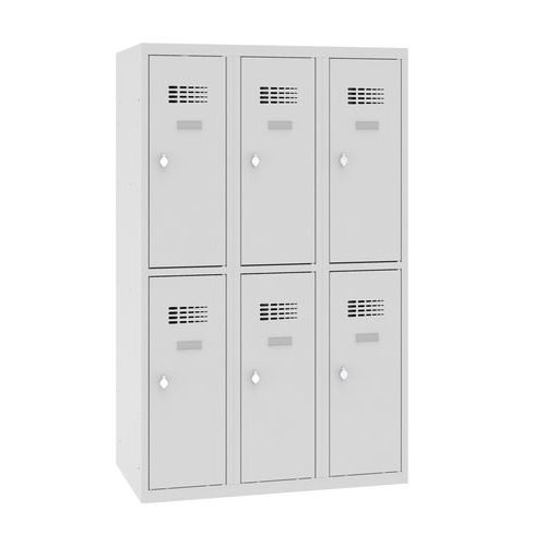 Niższe szafki szatniowe szkolne, 6 przedziałów, 300 mm, zamek obrotowy - Niższa szafka szatniowa szkolna, 6 przedziałów, 300 mm, szara/szara, zamek ob