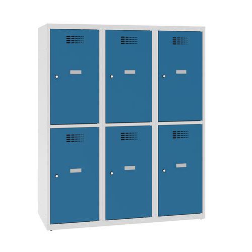 Niższe szafki szatniowe szkolne, 6 przedziałów, 400 mm, zamek cylindryczny - Niższa szafka szatniowa szkolna, 6 przedziałów, 400 mm, szara/niebieska,