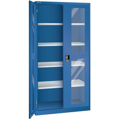 Szafki warsztatowe LISTA z półkami, 1250x400x1950mm, drzwi pełne lub z pleksiglasem - Szafka warsztatowa LISTA z półkami, 1250x400x1950mm, drzwi z ple